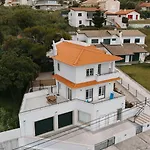 Gasten kunnen genieten van een kust uitzicht op de zee vanaf een terras in de 2-slaapkamer Casa Do Xixo Villa Quiaios, binnen een korte wandeling van 25 minuten van de vuurtoren van Kaap Mondego.